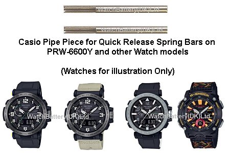 A set of pipe pieces for quick release spring bars for fitting the watch strap on the PRW-6600Y watch and the following watch models: