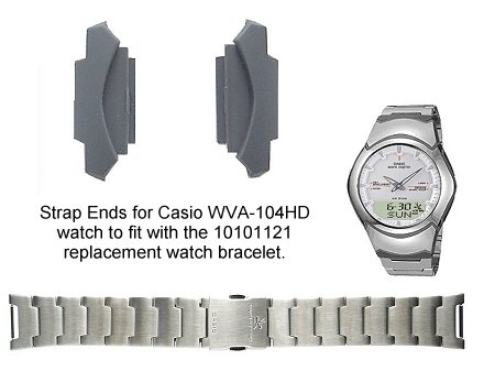 These dark grey resin strap ends are used on the Casio WVA-104HD watch between the watch case and the metal bracelet. Used with the following Casio watch models: