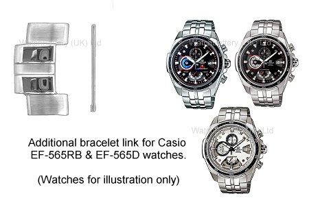 Additional watch link for adjusting watch bracelet length. This watch link is for the watch bracelets on the EF-565 watch and the variants listed below: