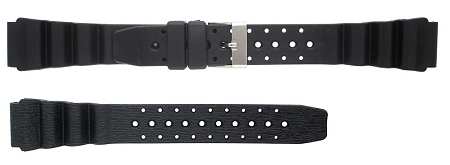 This black resin dive watch strap is supplied in smaller width to fit ladies' or youths' dive watches with a 16mm width fitting at the lugs.