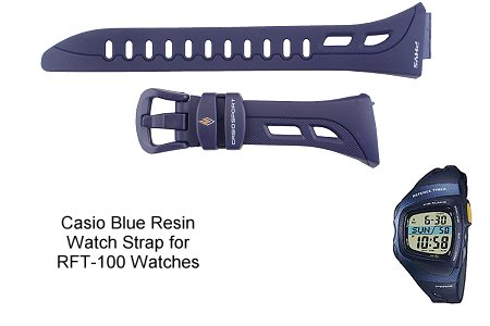Genuine Casio blue resin watch strap (Casio strap code:714-FN1 Casio part no:10227755) - fits the RFT-100 sports watch and variants listed below: