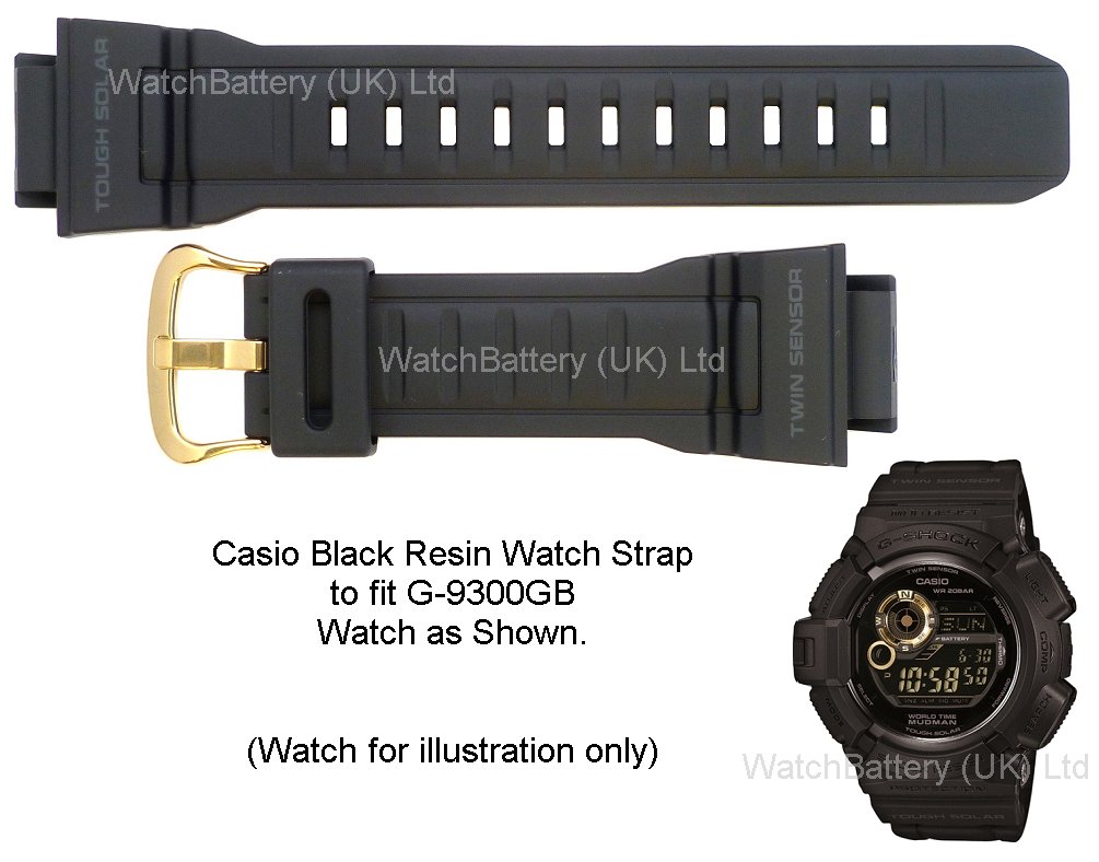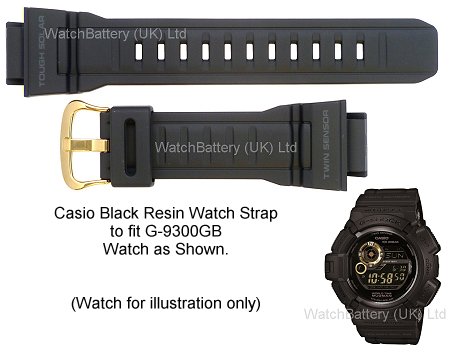 Genuine Casio black resin watch strap (Casio strap code:796-P21-16 Casio part no:10390967) to fit G-9300GB watches and following variants: