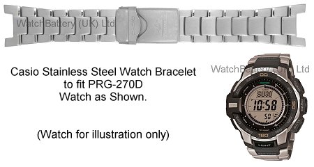 Genuine Casio stainless steel bracelet (Casio part no:10461782) for Casio PRG-270D with the following model variants: