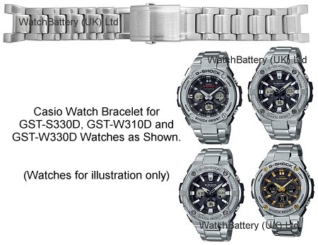 Genuine Casio strainless steel watch bracelet (Casio part no: 10549182) - fits GST-S330D watches and the following variants: