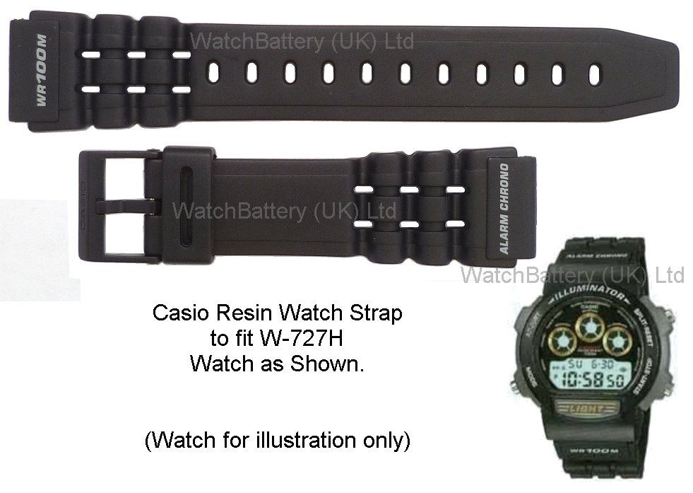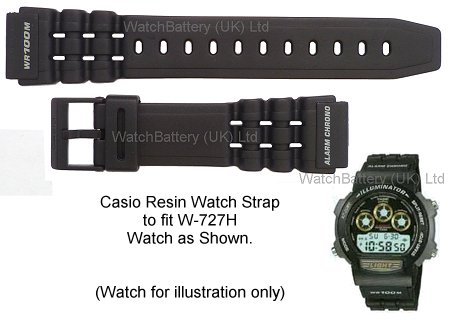Genuine Casio replacement black resin watch strap (Casio part no:71602198) - fits watches with the base code W-727H and following variants: