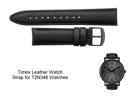 A Genuine Timex replacement black leather watch strap for the T2N346 watches.