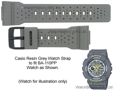 This Genuine Casio Replacement Watch Strap will fit the Casio BA-110PP (Grey) Watch