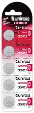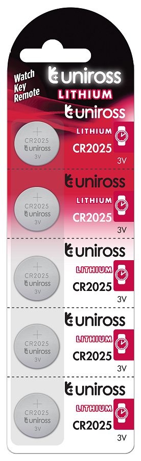 Uniross CR2025 3V Coin Cell battery - card of 5