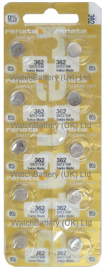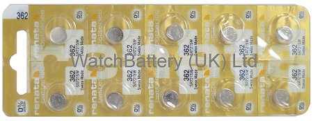 Renata 362 MP-E extended-life silver oxide watch battery 1.5 Volts. Pack of 10 batteries for the price of 8.