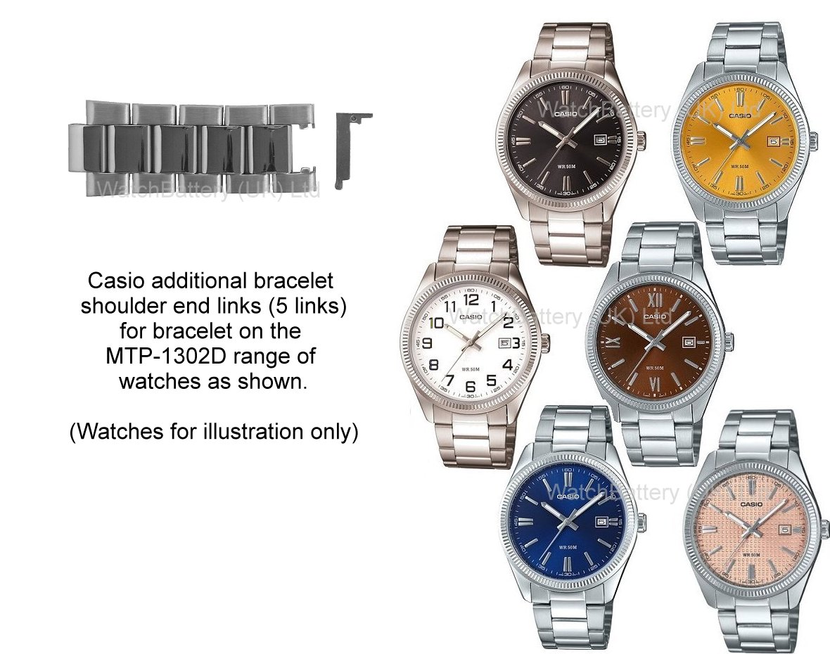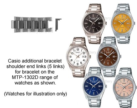 The complete MTP-1302D watch bracelet, clasp, bracelet end pieces, shorter shoulder end bracelet lnks and additional bracelet lnks are also available.