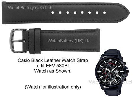 Genuine Casio black leather watch strap (Casio part no:10548370) for Casio watches EFV-530BL with the following model variants: