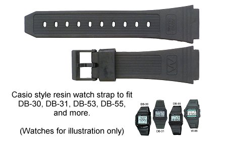Black Resin watch strap to fit Casio DB-55W, DB-30 and other models.