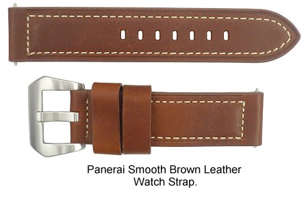 Leather -Panerai Smooth Brown Leather Stitched Watch Strap -22mm