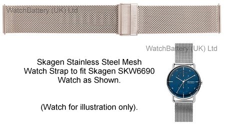 Skagen Stainless Steel Mesh Watch Strap for SKW-6690 Watch.